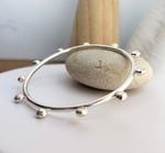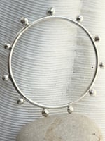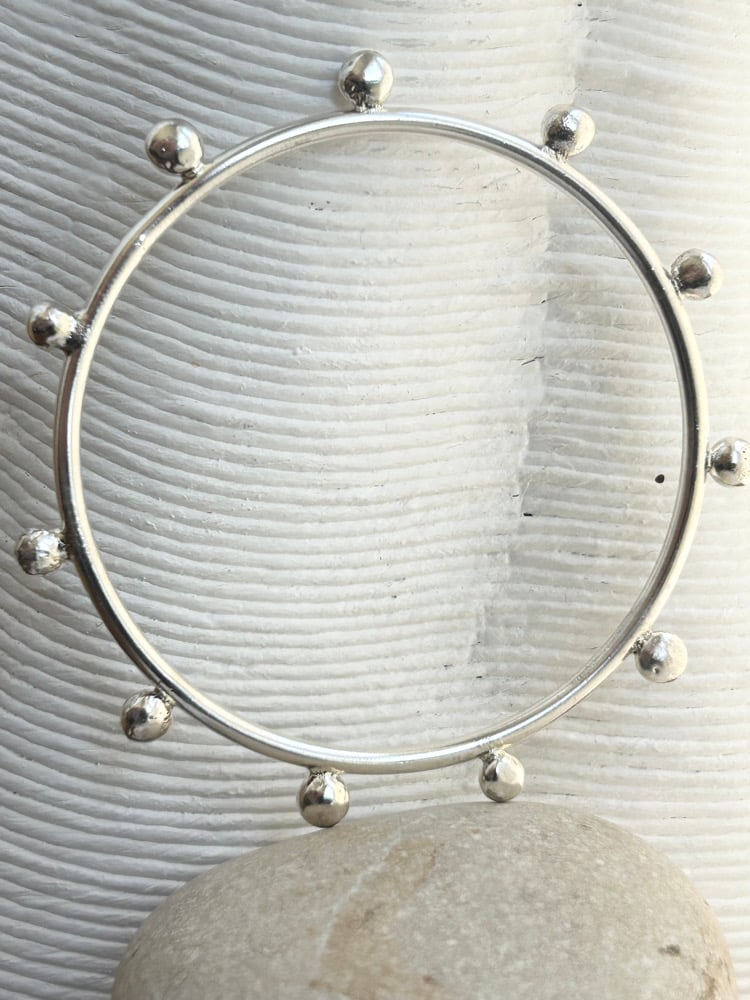Using traditional silversmith techniques, I shape the bangle to make to a perfect circle then solder the balls of sterling silver to recreate the rays ... Each bangle will have a minimum of 10 rays. Finally it's tumbled for strength and mirror polished.