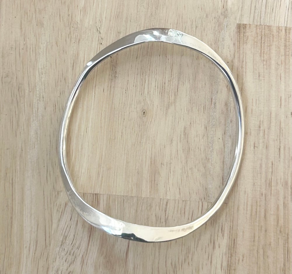 The Waveform Bangle is a beautiful, sterling silver statement bangle with perfect weight and balance. The bangle effortlessly moves around your wrist showcasing its curves that echo movement and flow.